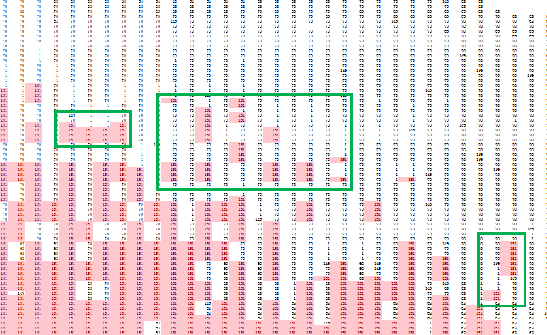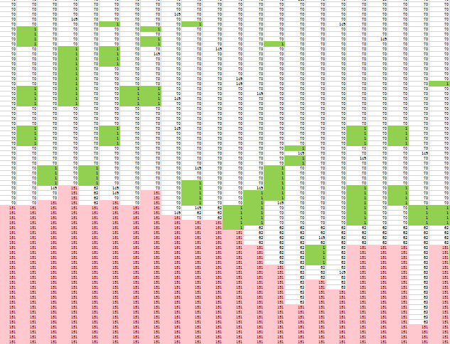 如图所示,本发明红色是核心BIN(151),绿色本来也为核心BIN,经此发明后转化为细分BIN(001),分选机将此散BIN挑拣到蓝膜,达到节约目检人力和提高成品入库数的目的。