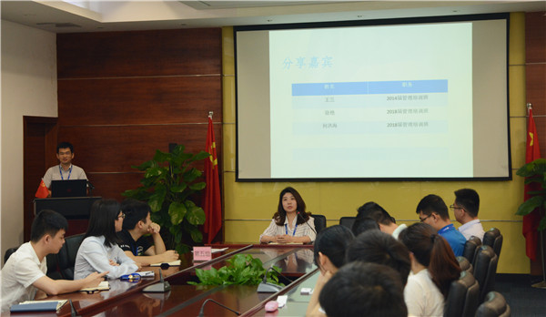 本次开班典礼还邀请了往届管理培训班的学员作经验分享(2014届王兰;2018届徐艳、何洪海)。三位往届学员回顾了自己在管理培训班的难忘学习经历:打开了管理工具及思维的天窗、触及内心深处的感恩分享、挑战自我潜能的拉练与拓展……在培训过程中,努力应对和解决困难和挑战,尽情挥洒奋斗的汗水,收获了同事之间风雨同舟共患难、同甘共苦齐奋进的情谊,让自己遇到了更好的自己!