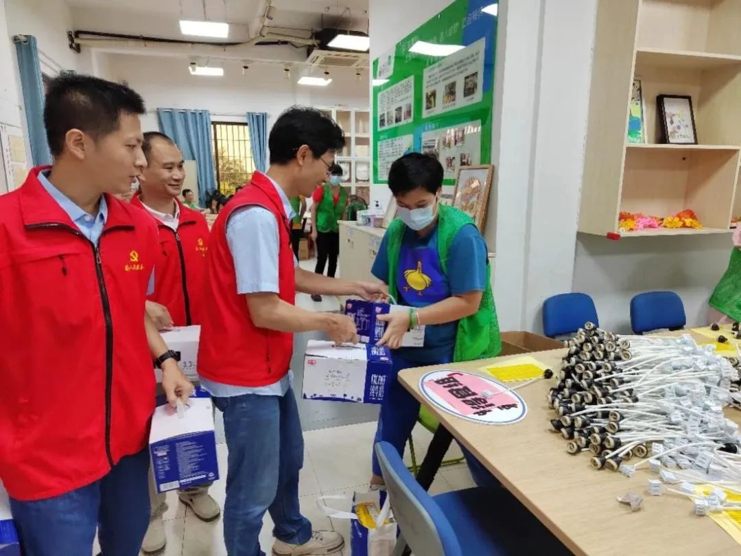 活动开始,品质部党员为大家介绍了公司情况和产品,并实物展示了灯具放光原理。随后,党员跟学员们进行了党建知识问答、你划我猜、重走长征路等游戏互动,现场洋溢着热烈欢快的气息。最后,党员们为康园学员们送上活动的奖品和慰问品,并鼓励学员要自强不息,在康园积极康复,努力创造美好幸福生活。