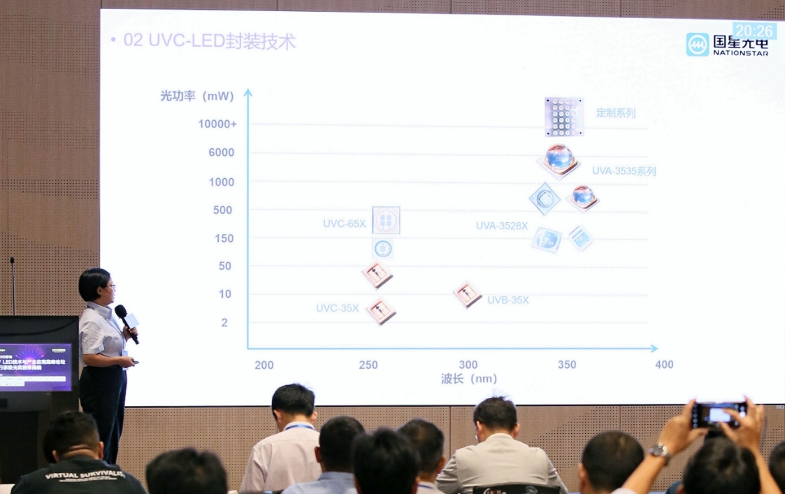 高峰论坛上,围绕当前深紫外LED(UVC-LED)行业的发展趋势,永信贵宾会光电发表了《高品质UVC-LED “紫”向多元化应用》主题演讲,与现场嘉宾分享了公司在UVC-LED领域最新的产品布局及多元化的场景应用方案。