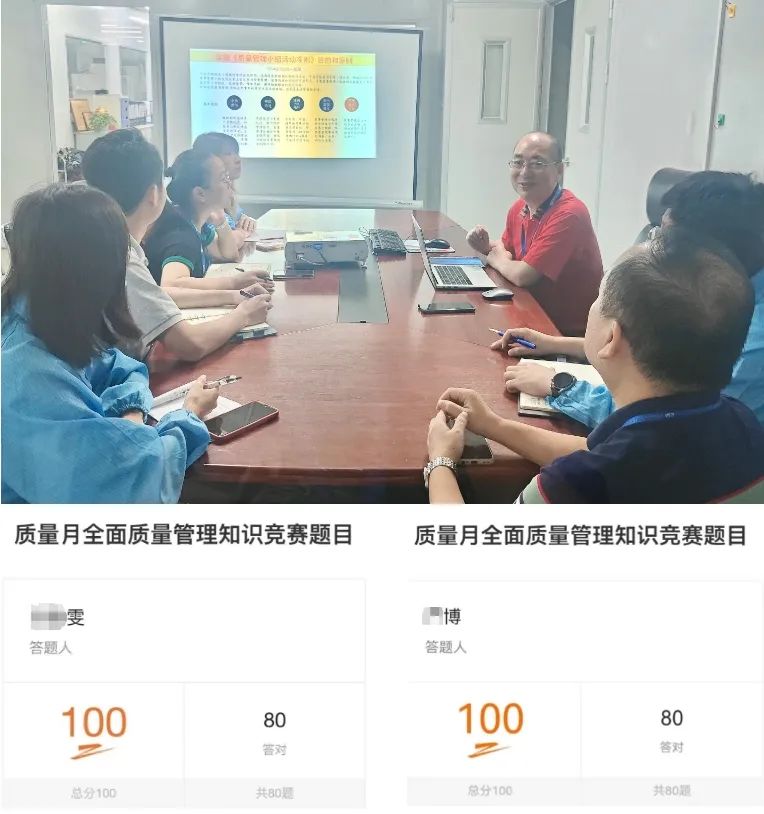 质量强则企业强,要将质量意识深深根植于每一位员工心中,必须找准质量活动和质量文化的契合点。在质量文化宣传上,永信贵宾会光电采取“线上、线下”双轨并行,通过微信公众号、网站、线上知识问答等,进行科普教育和问答互动,持续增强员工质量意识,提升员工对质量文化的认同感;通过QC小组活动、“质量月”提升行动、质量知识竞赛、质量例会等线下宣贯推广,助推质量文化内化于心、外化于行,营造单位重视质量、岗位追求质量、人人关注质量的氛围,让质量强企成为公司高质量发展的广泛共识。