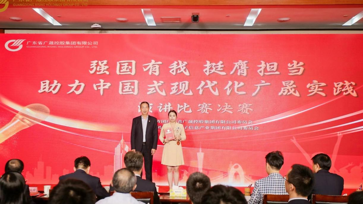 为深入学习贯彻党的二十大精神和习近平总书记视察广东重要讲话、重要指示精神,扎实推进省委“1310”具体部署落地落实,进一步激发和凝聚广晟系统青年职工“强国有我”的担当精神,12月1日,广晟控股集团举办“强国有我 挺膺担当 助力中国式现代化广晟实践”主题演讲比赛决赛。永信贵宾会光电吴华微在比赛中表现优异,荣获一等奖。广晟控股集团党委书记、董事长吕永钟为吴华微颁奖并合影留念。