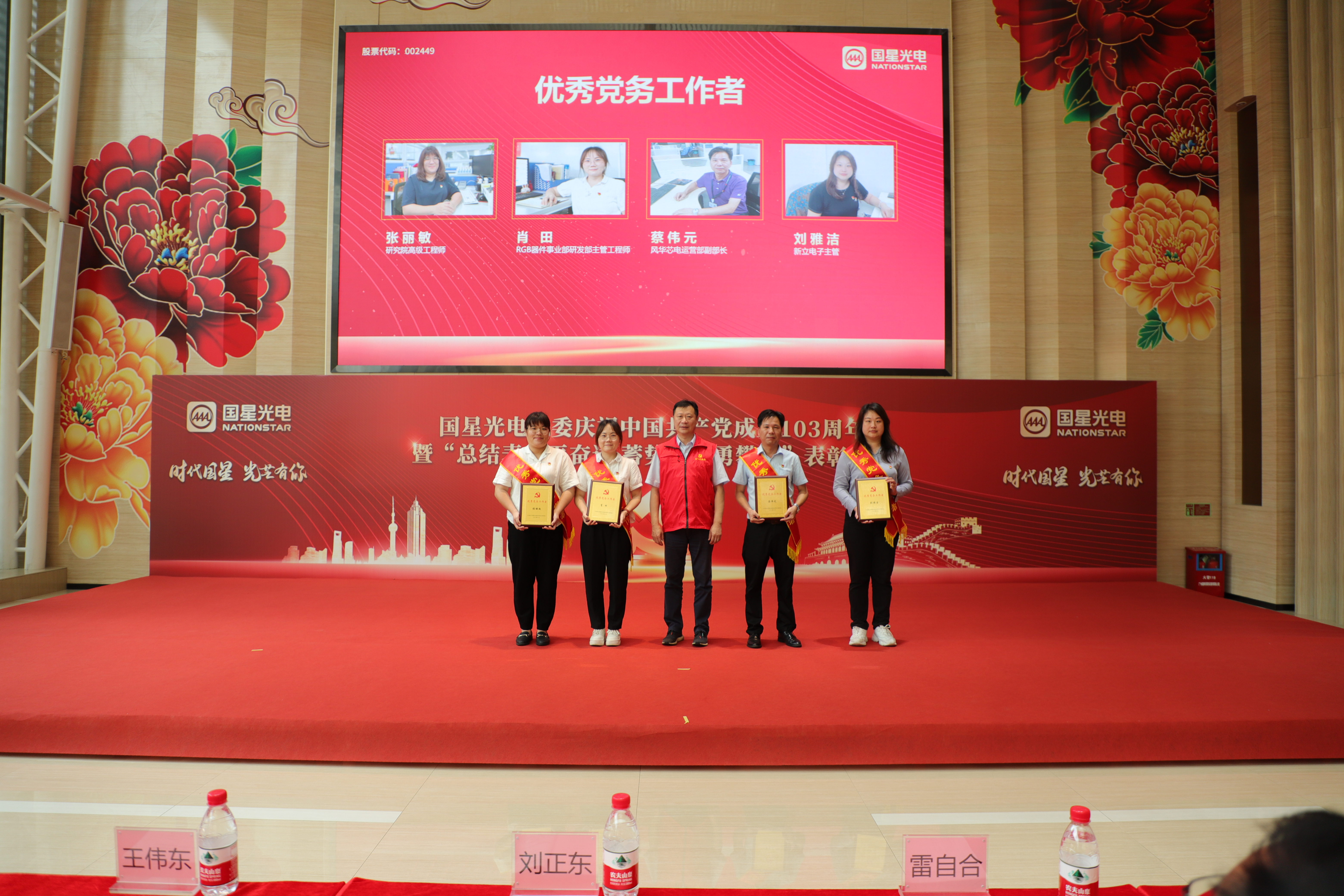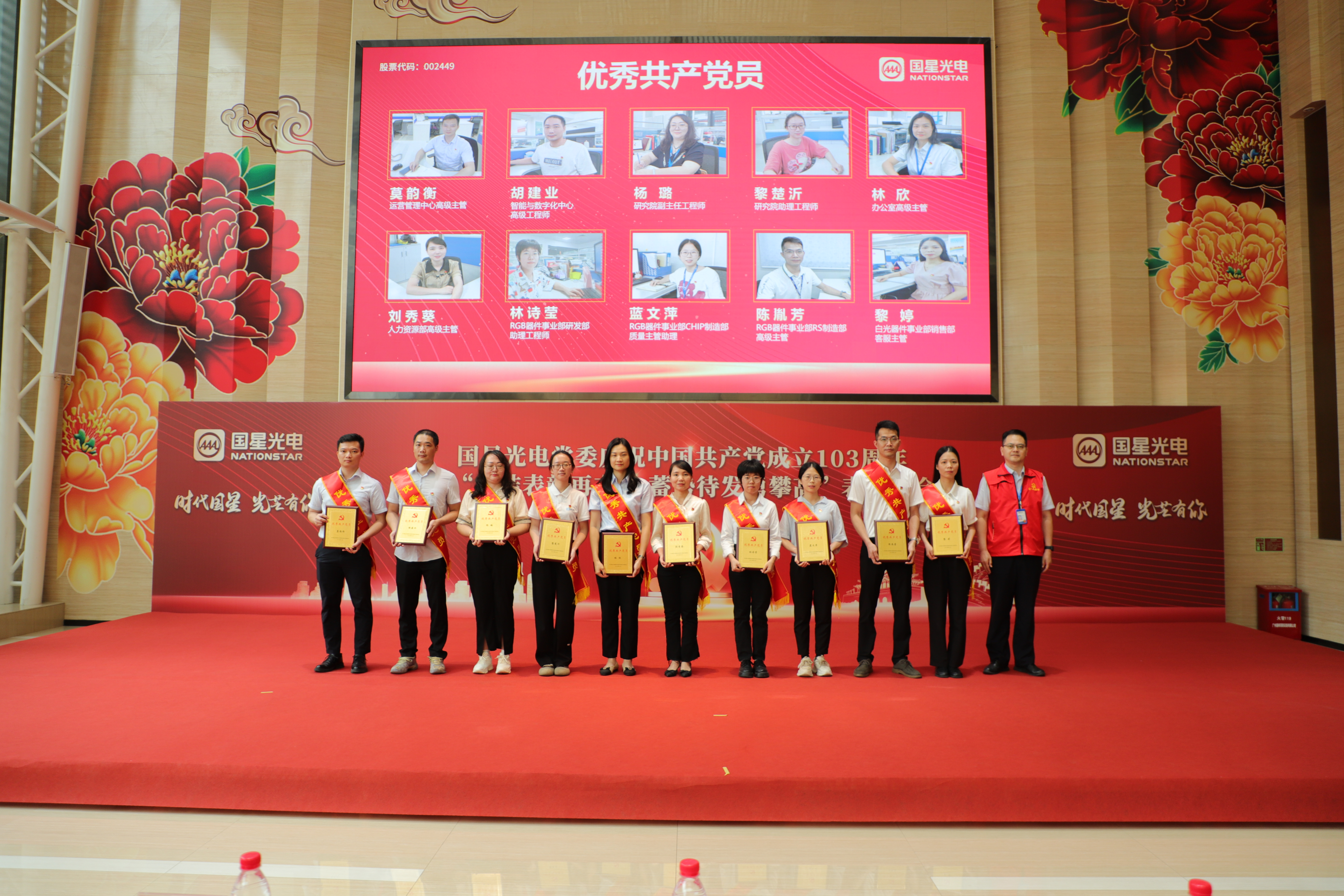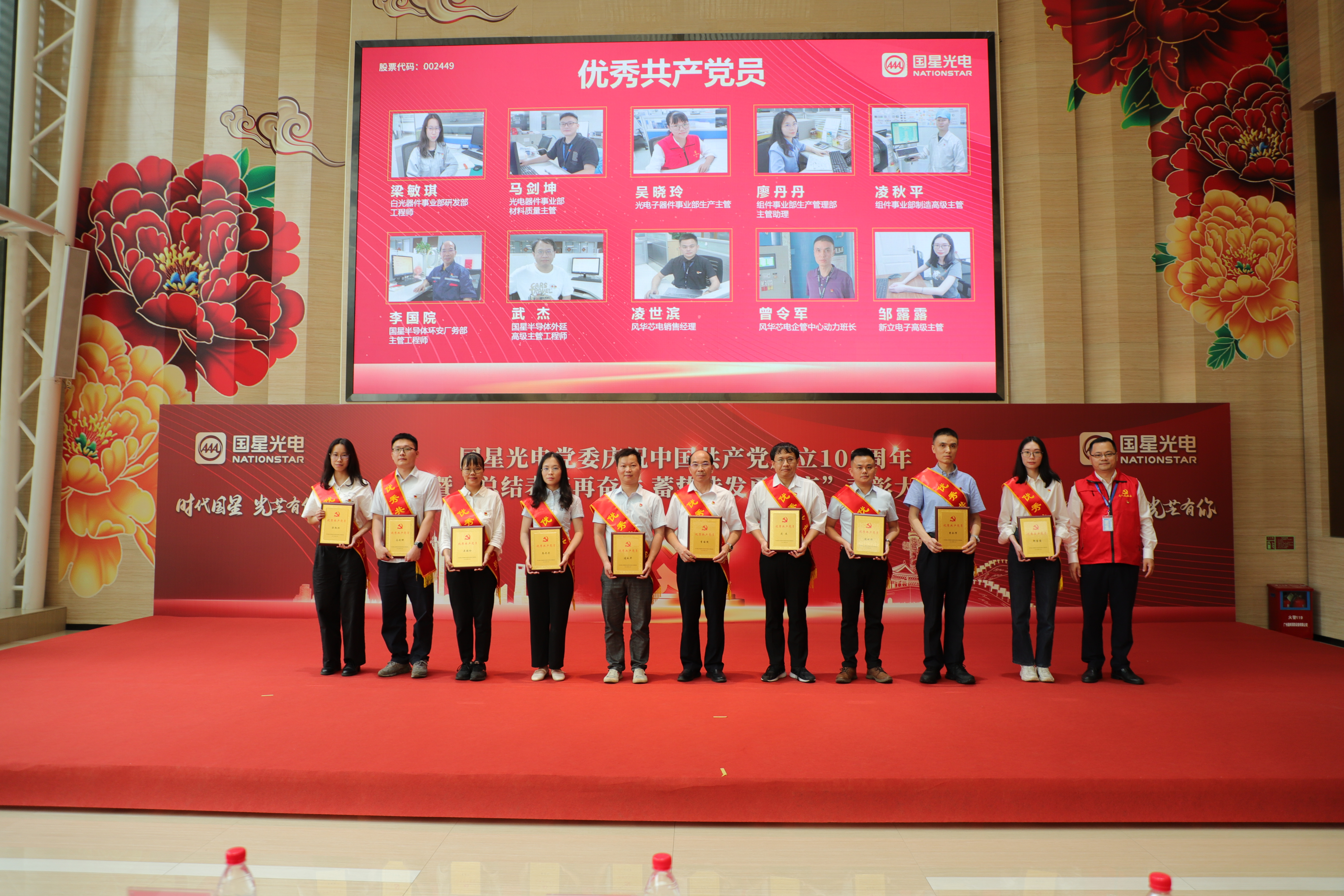洪育权现场宣读了《关于表彰永信贵宾会光电党委“两优一先”的决定》,公司党委为受表彰的优秀党员、优秀党务工作者和先进基层党组织颁奖。