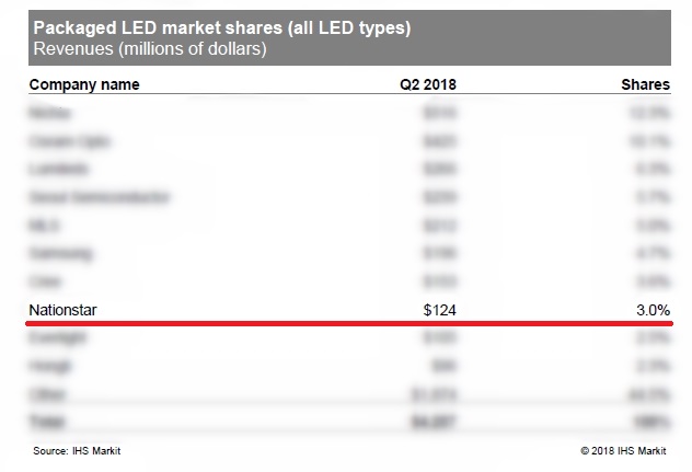 IHS Markit发布2018年Q2全球LED封装企业排名