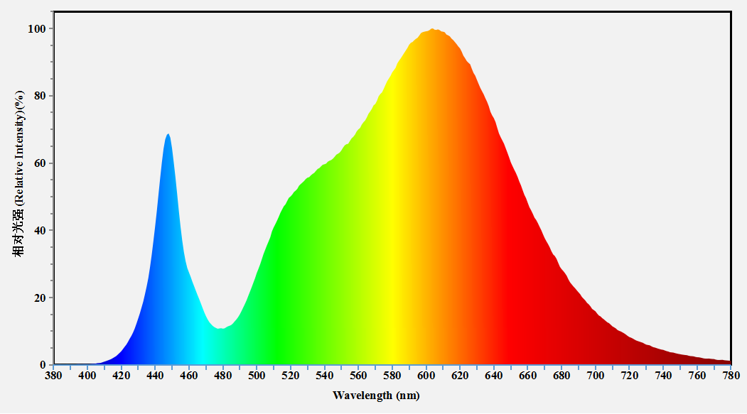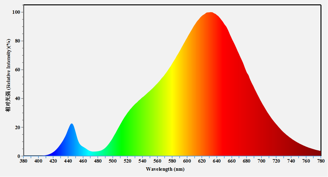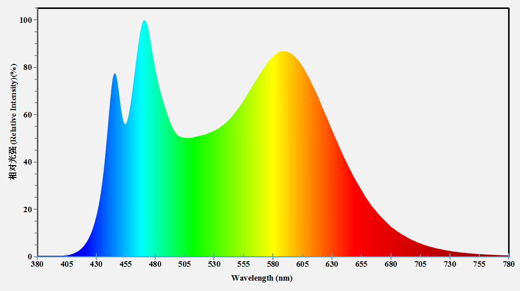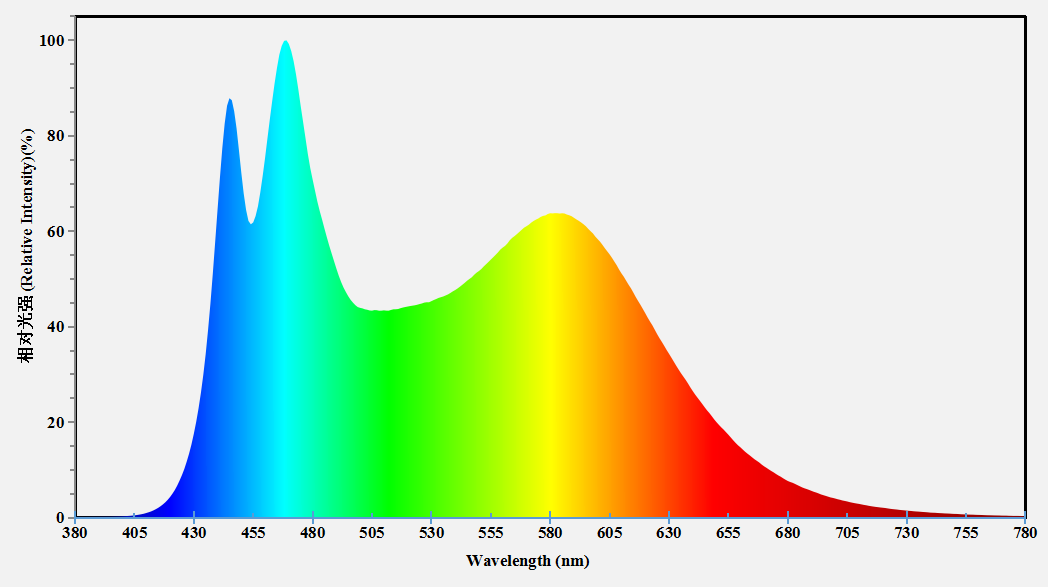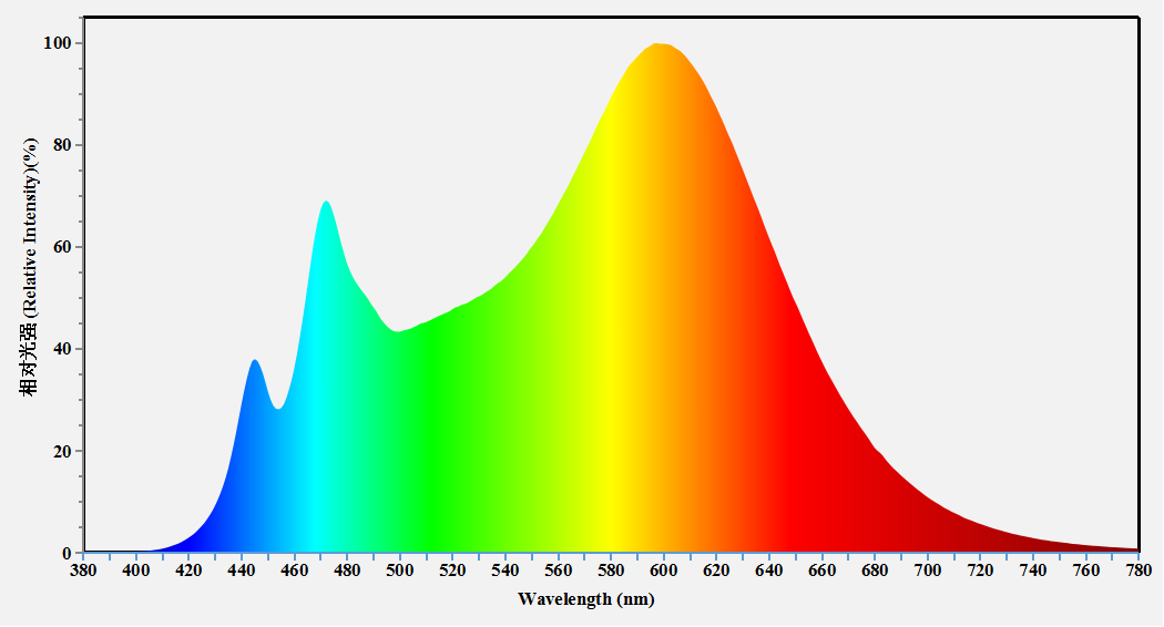 ● 补全青光、短波绿光和长波红光部分光谱后,光谱连续性与完整性显著提升,色域更广,更接近太阳全光谱;