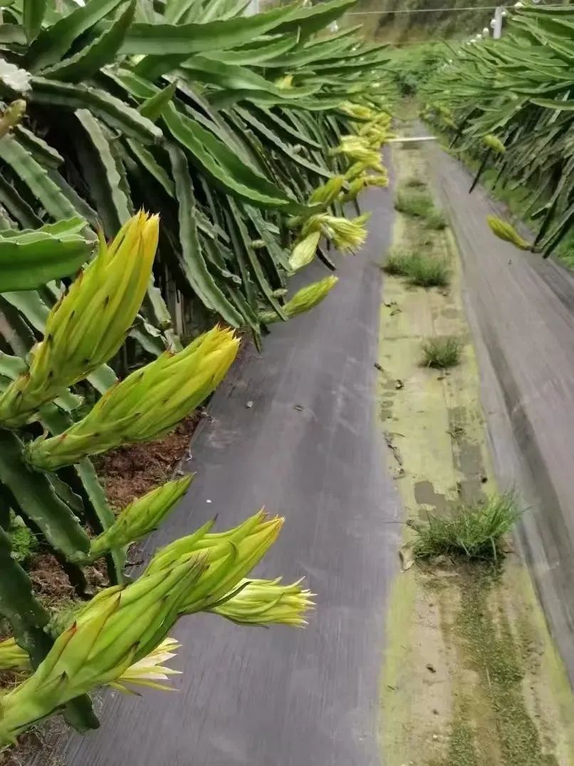 根据广东中南部地区的气候特点,每年2月中旬至4月底、9月中旬至12月初,当地温度适宜但缺乏光照,存在火龙果生长所需光照不足、成花受阻的情况,需通过每晚3-4小时的人工补光,才能够有效诱导成花、延长产期。