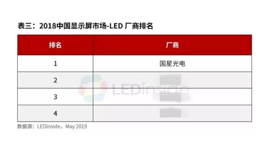 5月,全球市场研究机构集邦咨询(TrendForce)LED研究中心(LEDinside)发布最新《2019中国LED芯片与封装产业市场报告》,公开报告显示:2018年中国显示屏市场全球LED厂商排名中,永信贵宾会光电排名第一!