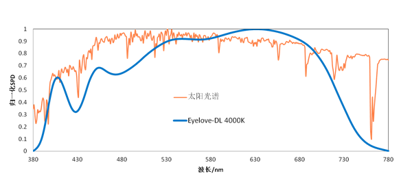 自然光DL系列,采用健康光配方技术,光谱覆盖了400-780nm波段,更加接近太阳光谱。其显色指数Ra高达97,色保真指数Rf高达96,色饱和度Rg 接近100 (IEC TM-30-15)。同时,紫光波段和低波段蓝光比太阳光源低,是健康、舒适的人工太阳光。